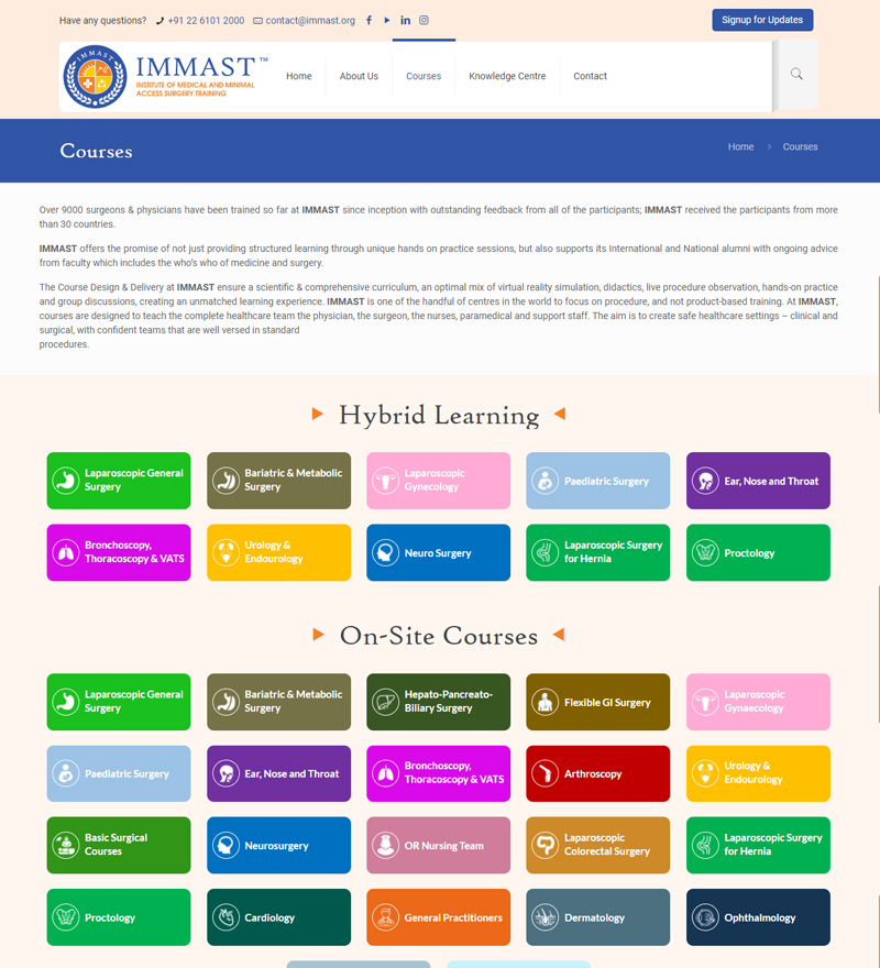 With the management change, the website needed to reflect the altered business outlook. Also, in line with the pandemic restrictions, we upgraded the system to support & introduce Hybrid Learning Courses, Waiting-list, Next Course Date features that we developed indigenously. We strengthened the backend for accepting International payments via online registration. Our ongoing technical development, maintenance, update, SEO support played a crucial role.